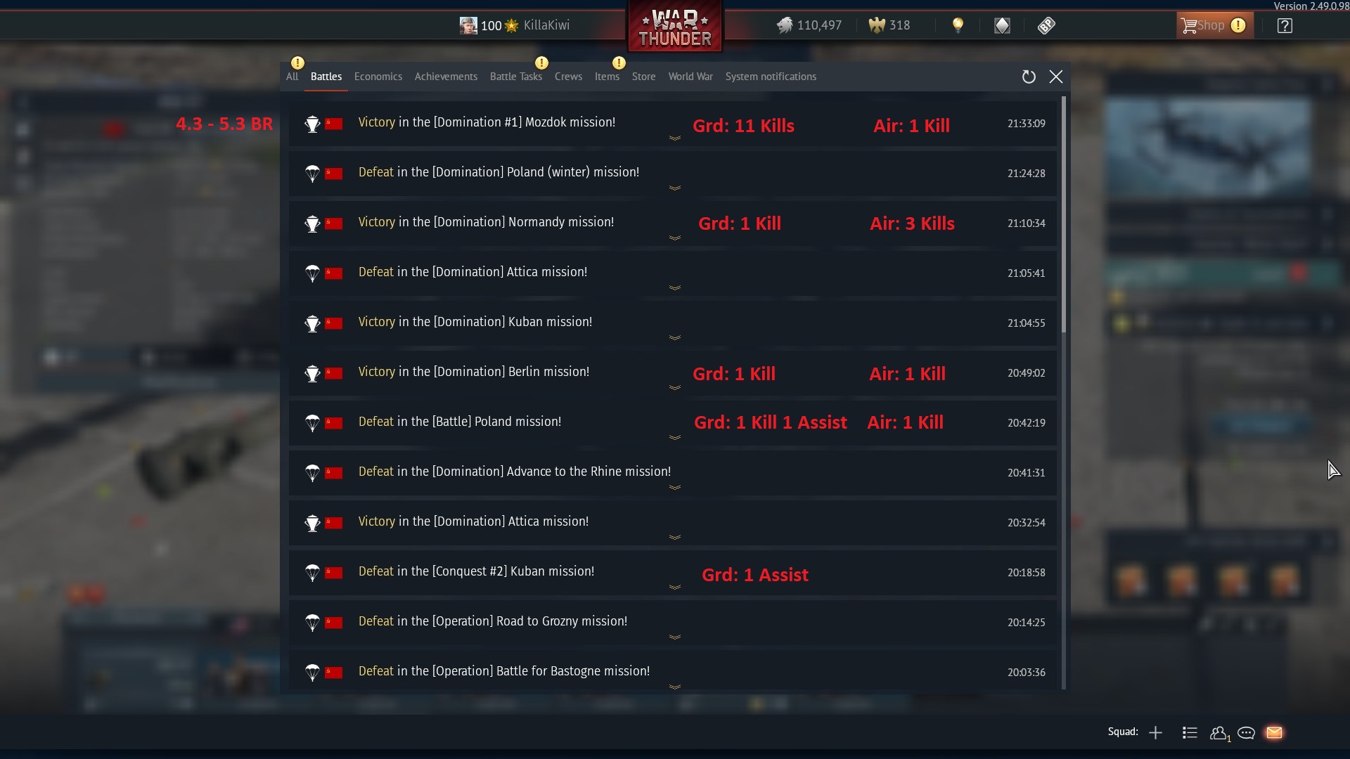 With 300m target distance the shots generally land above target, with 0m distance they drop low but that can be good since you don’t need to nose down that much. I used the latter for the last battle, where I got 11 ground kills in two sorties.