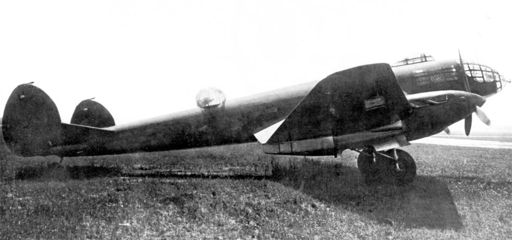 A photo taken of the side of the Yer-2 AM-37, clearly showing the dorsal and ventral machine guns