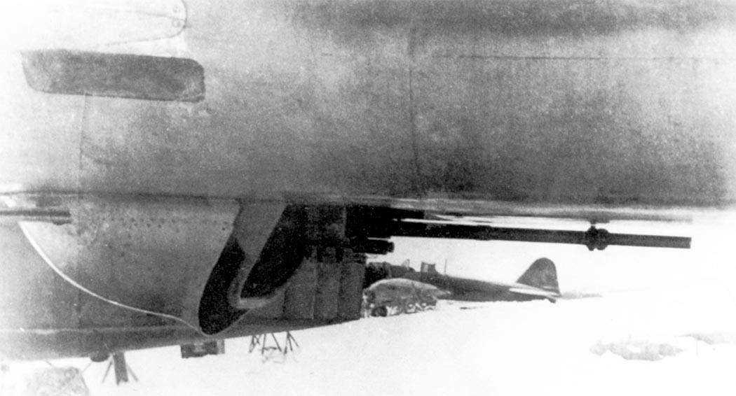 There were two more 12,7 mm Berezin UBT machine guns. One was mounted in the nose, on a NU-134 mounting. And another was on a ventral LU-MV-2B mount. This ventral mount had a rounded cover around it to reduce drag.